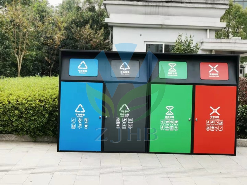 这一款户外垃圾桶选用优质镀锌钢板裁剪、压制、折弯后再焊接而成型;